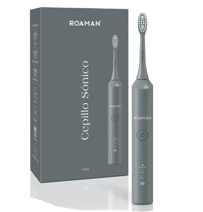 CEPILLO ELECTRICO ROAMAN T3 COLOR GRIS es un cepillo de dientes eléctrico diseñado para ofrecer una limpieza dental eficiente y placentera. Su tecnología inteligente proporciona un sistema de limpieza que ayuda a eliminar la placa y mejorar la salud bucal a través de pulsaciones y oscilaciones rápidas que garantizan una experiencia de cepillado superior.