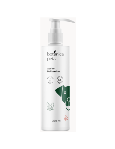 DELISARDINA 250 ML BOTANICAPETS es un complemento alimenticio premium diseñado para la salud y el bienestar de tus mascotas. Formulado a base de aceite de sardina 100%, este producto está especialmente indicado para animales con poco apetito y/o pelaje en mal estado (sin brillo, frágil).
