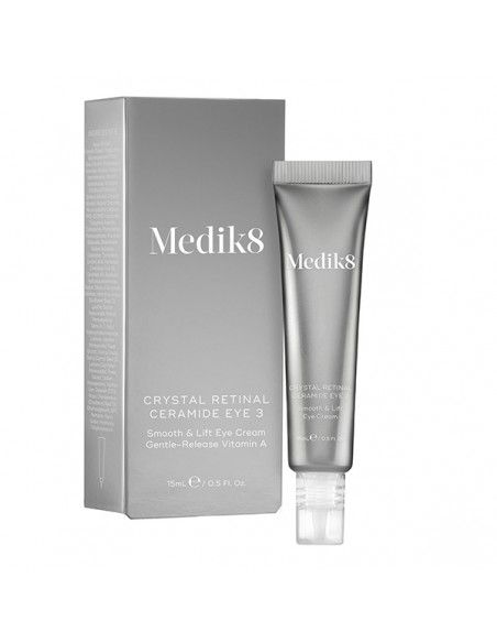 MEDIK8 CRYSTAL RETINAL CERAMIDE EYE 3 es un tratamiento ocular avanzado que combina la eficacia del retinol con la acción hidratante de los ceramidas, diseñado para mejorar la apariencia de las áreas delicadas alrededor de los ojos. Su innovadora fórmula trabaja en sinergia para reducir visiblemente las arrugas, las ojeras y la pérdida de firmeza, proporcionando un aspecto más joven y luminoso.