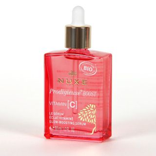 NUXE PRODIGIEUSE BOOST VIT C SERUM LUMINOSIDAD es un sérum revitalizante especialmente formulado para iluminar y revitalizar la piel. Su combinación única de vitamina C, extractos de plantas y otros ingredientes activos ayudan a combatir los signos del cansancio, dejando la piel radiante y fresca. Este producto está diseñado para todo tipo de piel, brindando un efecto luminoso inmediato.