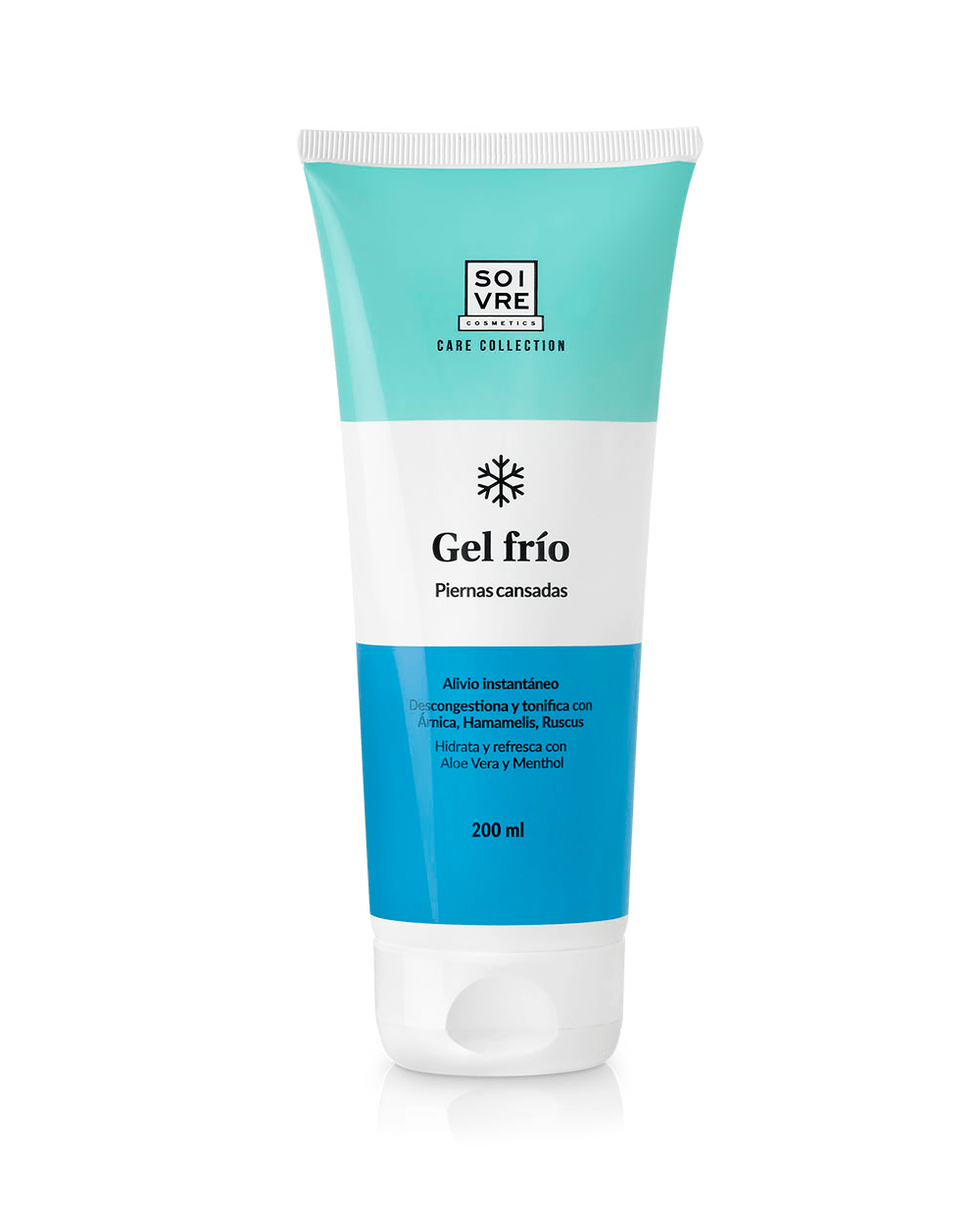 El gel frío Soivre Cosmetics está indicado para aliviar la sensación de pesadez en las piernas cansadas. Gracias al efecto frío del mentol y a la combinación de sus ingredientes naturales, ofrece una mejora inmediata, proporcionando una agradable sensación de bienestar y confort. Formulado a base de árnica, hamamelis, ruscus y aloe vera, estos activos vegetales reconfortan, descongestionan, calman y, a su vez, dejan la piel hidratada y suave.