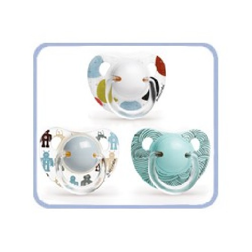 El chupete anatómico de Suavinex ha sido desarrollado para ofrecer a los padres una opción ideal para sus bebés, combinando diferentes formas, tamaños y materiales. Las tetinas de los chupetes están fabricadas con los mismos materiales que las tetinas para biberón: caucho y silicona. Estas tetinas pueden tener forma anatómica, fisiológica o redonda.